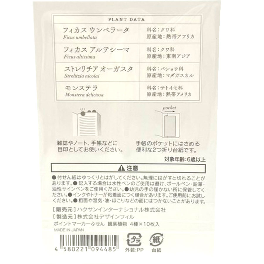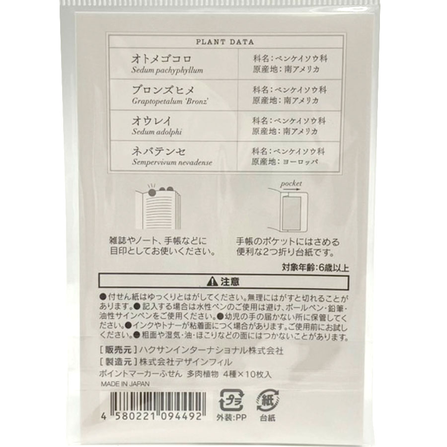 スケジュール帳やノートの目印に使えるポイントマーカー付箋です。観葉植物と多肉植物の2パターンがあり、それぞれ4種類の植物を貼って可愛くアレンジすることができます。予定の内容などによって使い分けられるのも便利で嬉しいです。