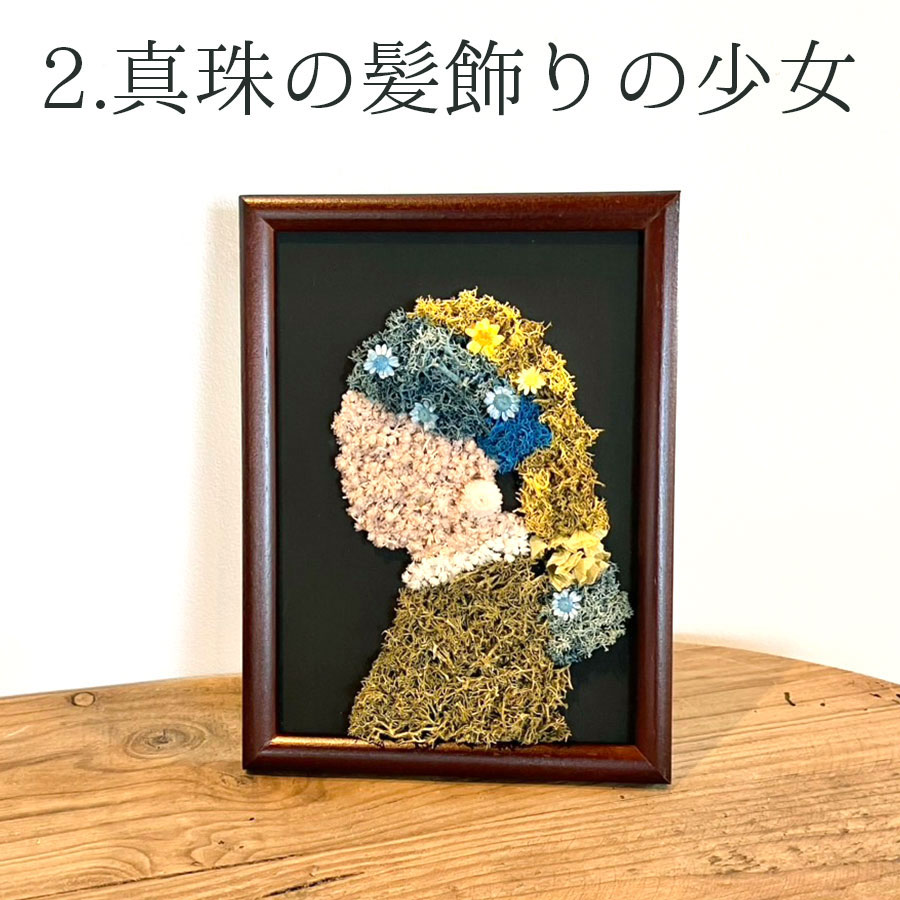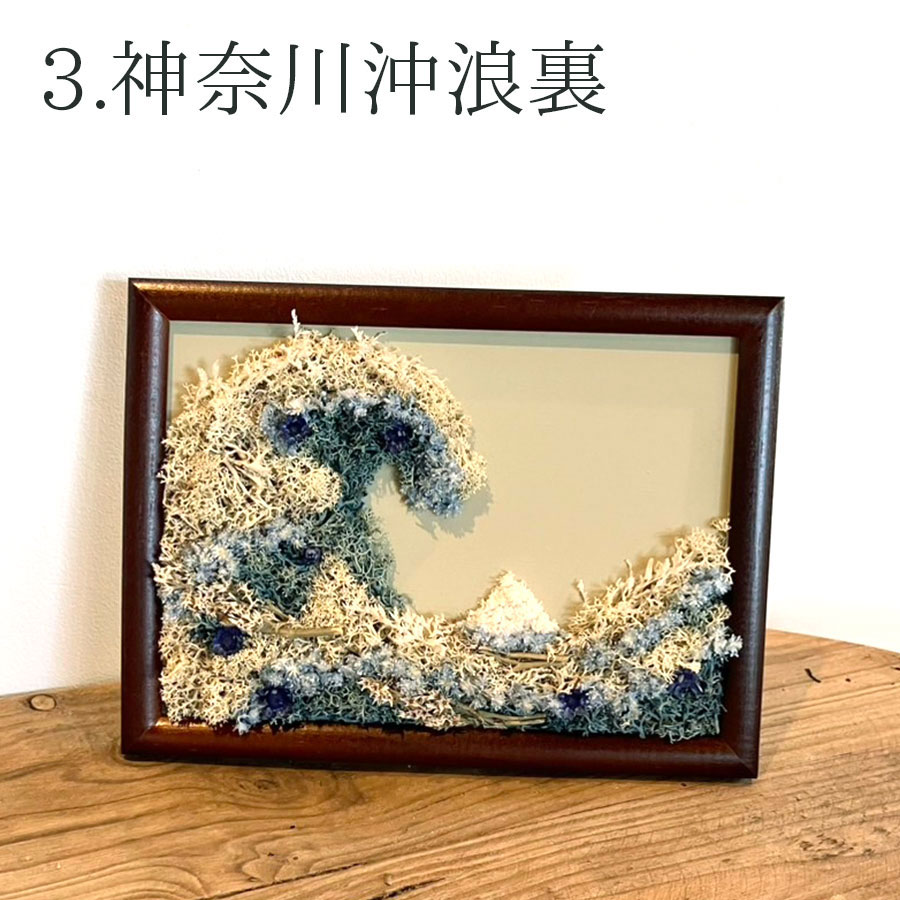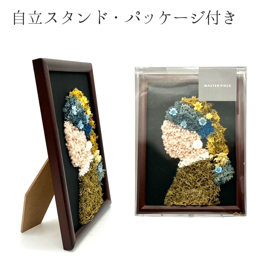 高品質なプリザーブドフラワーを存分に使用したフレーム付きの名画をモチーフにしたアートです。枯れる心配がなく、フレーム付きのためドライフラワーが落ちてしまう心配もありません。和洋3パターンのアートから選べるので、様々な場面でプレゼントにピッタリ。アートやドライフラワーのどちらとも違った魅力で、喜んでもらえます。