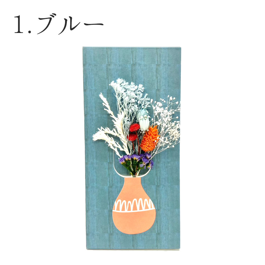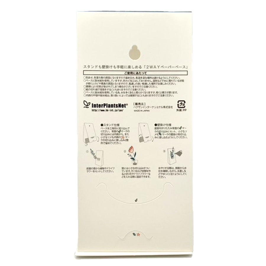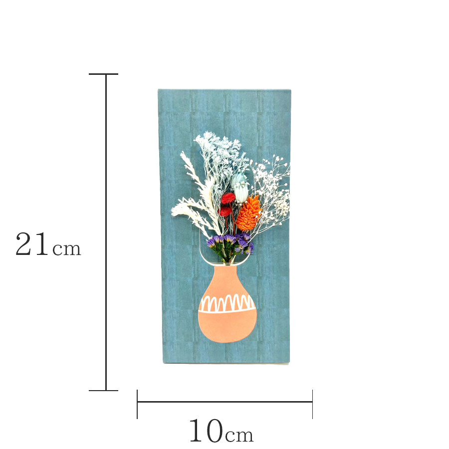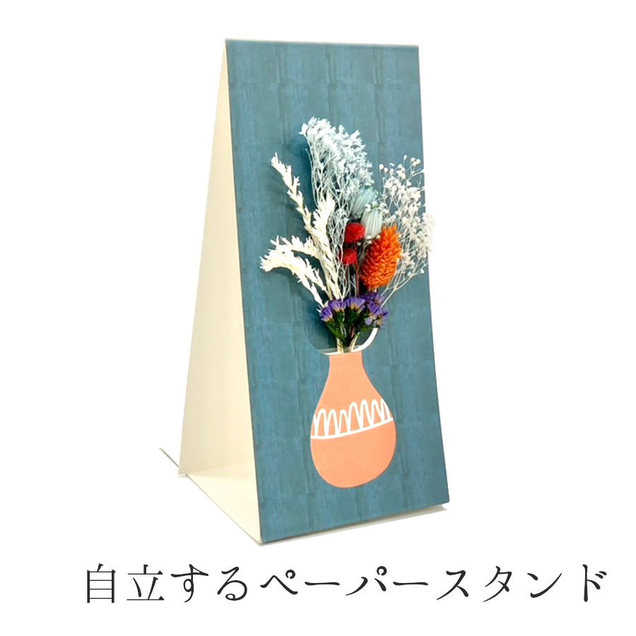 様々なポットのイラストを描いたペーパーベースに小さなブーケをセットした可愛いアイテム。自立可能なペーパーベースで、テーブルに置いても、折りたたんで壁に掛けても楽しめる2way仕様に。好きなところに飾って楽しめるからギフトとしてもオススメです。