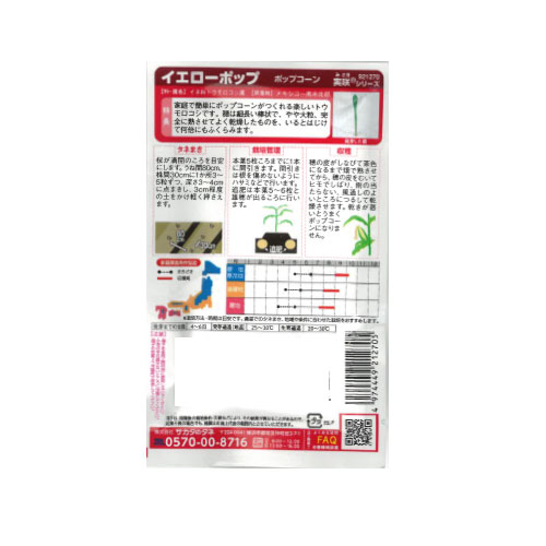 ポップコーン用では大粒のトウモロコシ。香ばしいポップコーンに仕上がります。スイートコーンと栽培する場合は200m以上離すか、開花期をずらして種まきしてください。