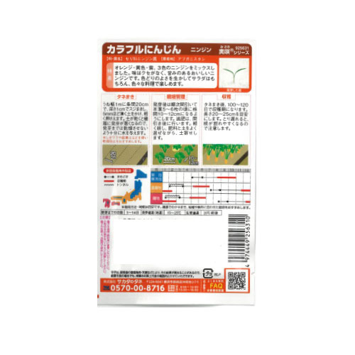 3色のカラフルなニンジンのミックスです。栽培期間も短く育てやすい。クセが無く甘いため、サラダやジュースで楽しめます。