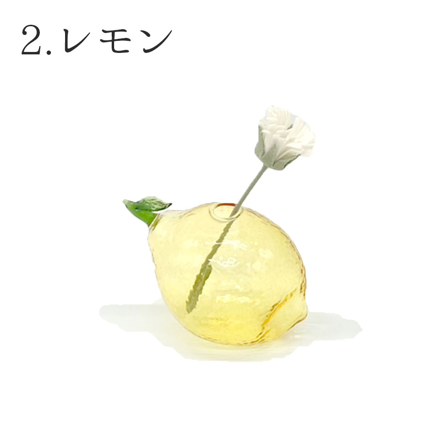 ガラスでできたフルーツ型の1輪挿しベースです。陽の光が当たると、より癒しの空間を演出します。折れてしまったドライフラワーや道端の花で楽しんでください。