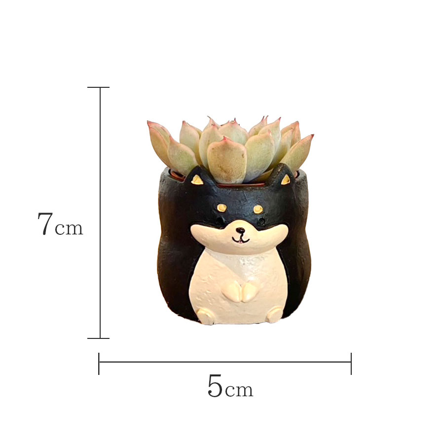 ミニサイズ(1.5号~2号程度)の植物を植えて楽しむ鉢カバーとランダムでついてくる多肉植物のセットです。ポットは底穴なしタイプ。オフィスや勉強机など、ちょっとした空間で多肉と動物を楽しむことができます。黒柴と茶柴からお選びいただけます。水やりはこまめな霧吹きか少量の水でOK!