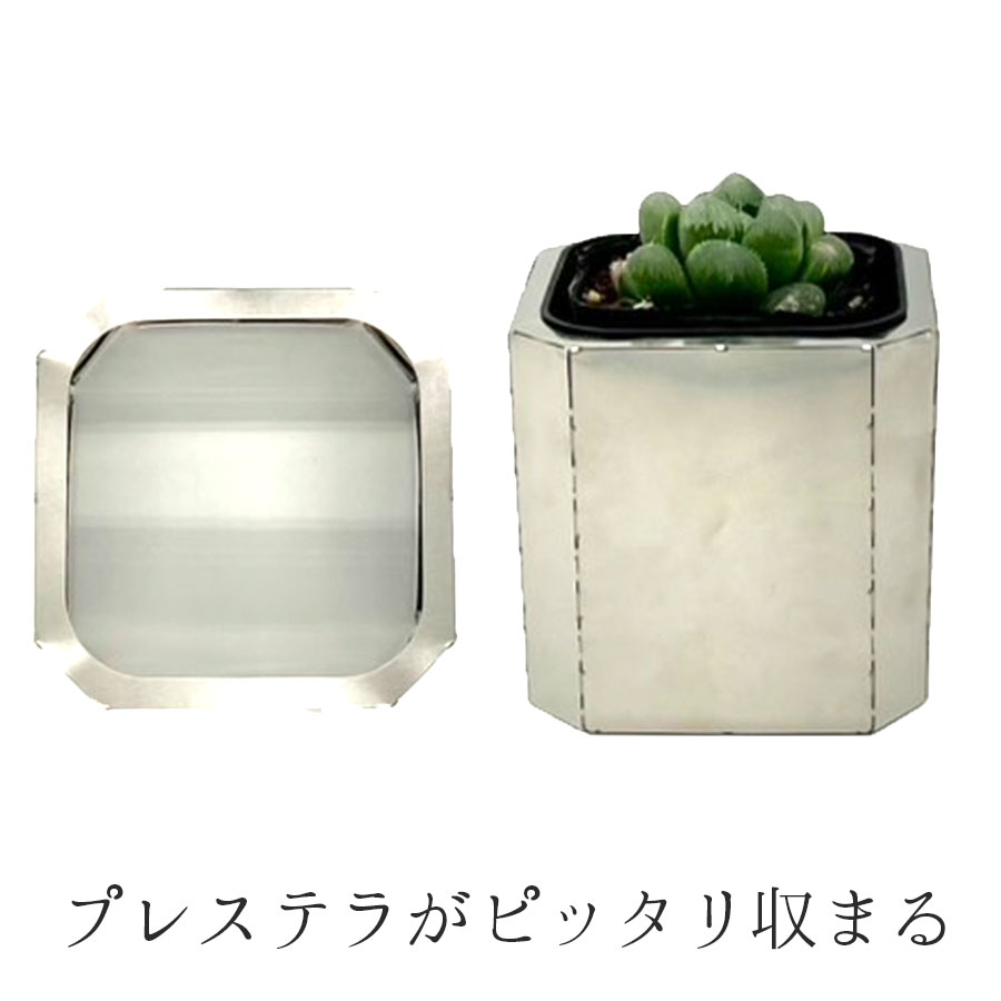 折り曲げて組み立てる新感覚のメタルポットカバーです。3号のプレステラがすっぽりと収まるサイズ感。自分で組み立てるユニークな鉢カバー。メタリックで珍しいデザイン性は塊根植物やアガベとの相性も抜群です。3種類のデザインはA→B→Cの順番で複雑になり難易度は上がります。