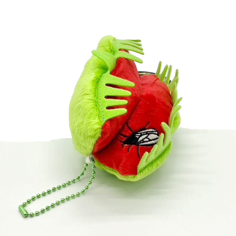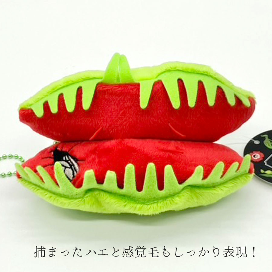個性的な食虫植物ハエトリソウのキーチェーンです。今にも食べられそうなハエさんの刺繍も!ハエトリソウが口を閉じるための感覚毛まで再現されています。インパクトのあるキュートなデザイン。リュックやカバンにつければ注目されること間違いなしです。後ろにはクリップがついています。