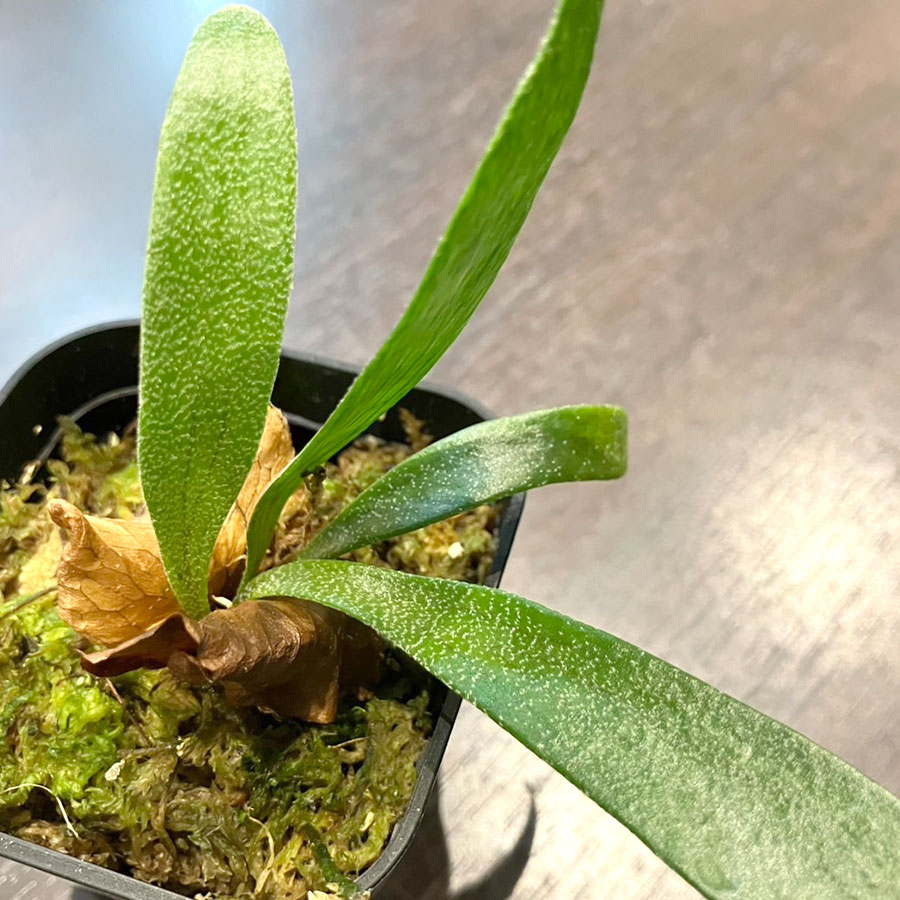 ビカクシダ アルシコルネ・ドワーフです。美しく伸びる胞子葉が魅力的な品種。ビカクシダの中でも比較的育てやすい品種で初心者の方にもオススメ。着生前のポットタイプです。