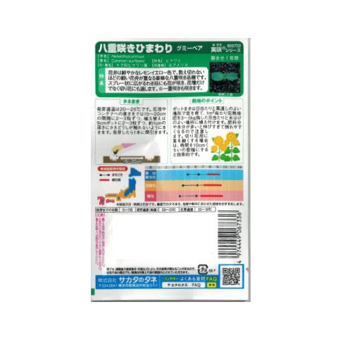 レモンのような爽やかな浅いイエローが目を惹く八重咲のヒマワリです。丸く大きな花は他のヒマワリと一線を画します。