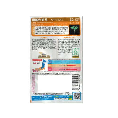 小さな白花と風船のような実が可愛い植物。草勢が強く育てやすい。緑のカーテンとしても人気です。