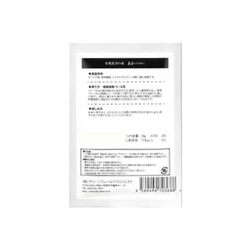 | 有機種子について:(株)グリーンフィールドプロジェクトが設けるGFPサステイナビリティ基準の基、種子が有機栽培で生産され、無化学消毒であることを独自に確認したもの。有機JAS規格では種子が認証対象外のため、独自の基準で普及を目指しているものです。 |
