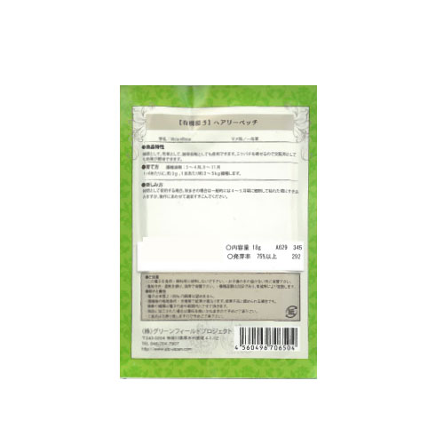 【ネコポス対応】 有機種子 ヘアリーベッチ