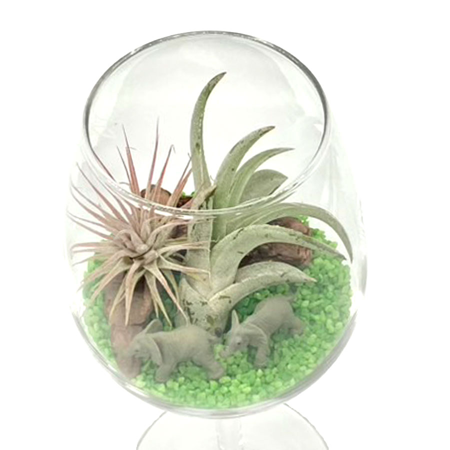 ワイングラスにエアプランツを使って自然を再現したテラリウムです。エアプランツは1日1~2回の霧吹きで管理できるので簡単。月に1回程度、水につけてあげると尚良いです。8種類の動物から選べます。オフィスの机やおうちのテーブルにちょっとした自然の癒しをプラスしてくれます。