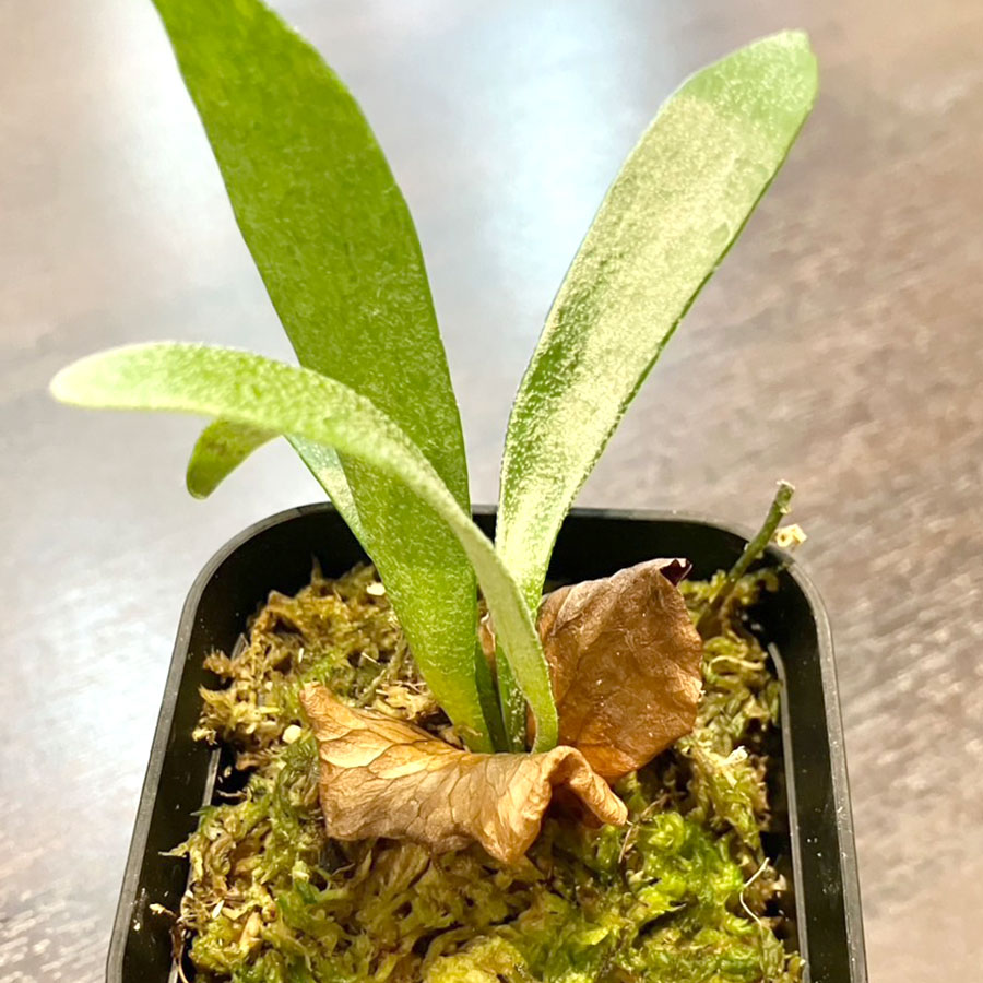 ビカクシダ アルシコルネ・ドワーフです。美しく伸びる胞子葉が魅力的な品種。ビカクシダの中でも比較的育てやすい品種で初心者の方にもオススメ。着生前のポットタイプです。